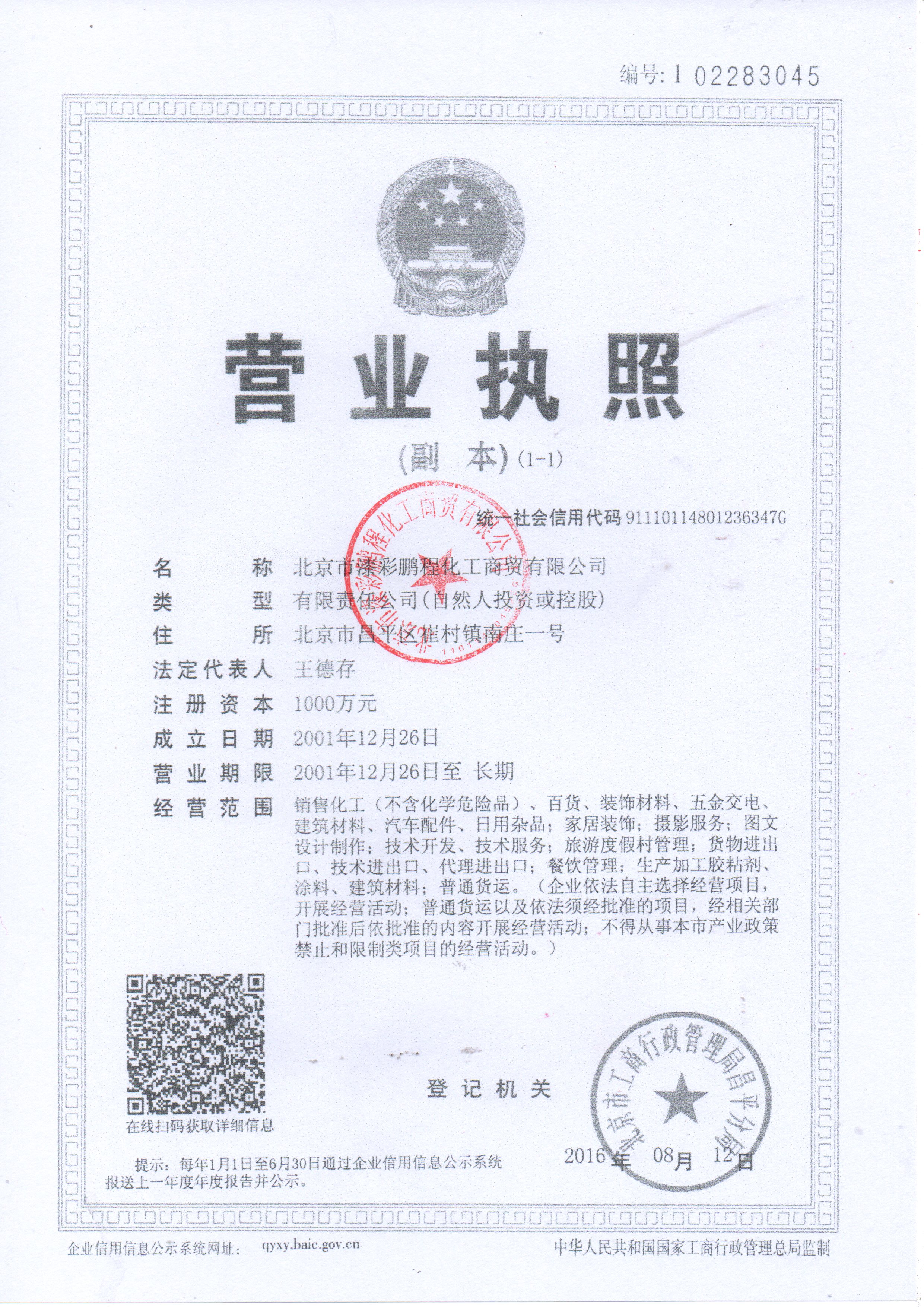 手 機(jī):18001287228北京市漆彩鵬程化工商貿(mào)有限公司—營(yíng)業(yè)執(zhí)照
